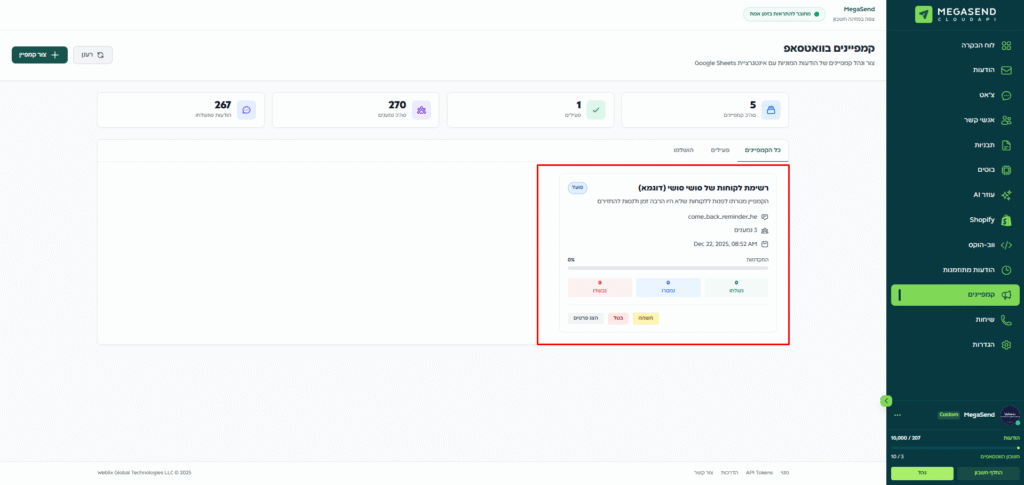 קמפיינים מתקדמים מאפשרים לשלוח הודעות וואטסאפ בצורה חכמה, מדויקת ומותאמת אישית — במקום הודעה זהה לכולם.
