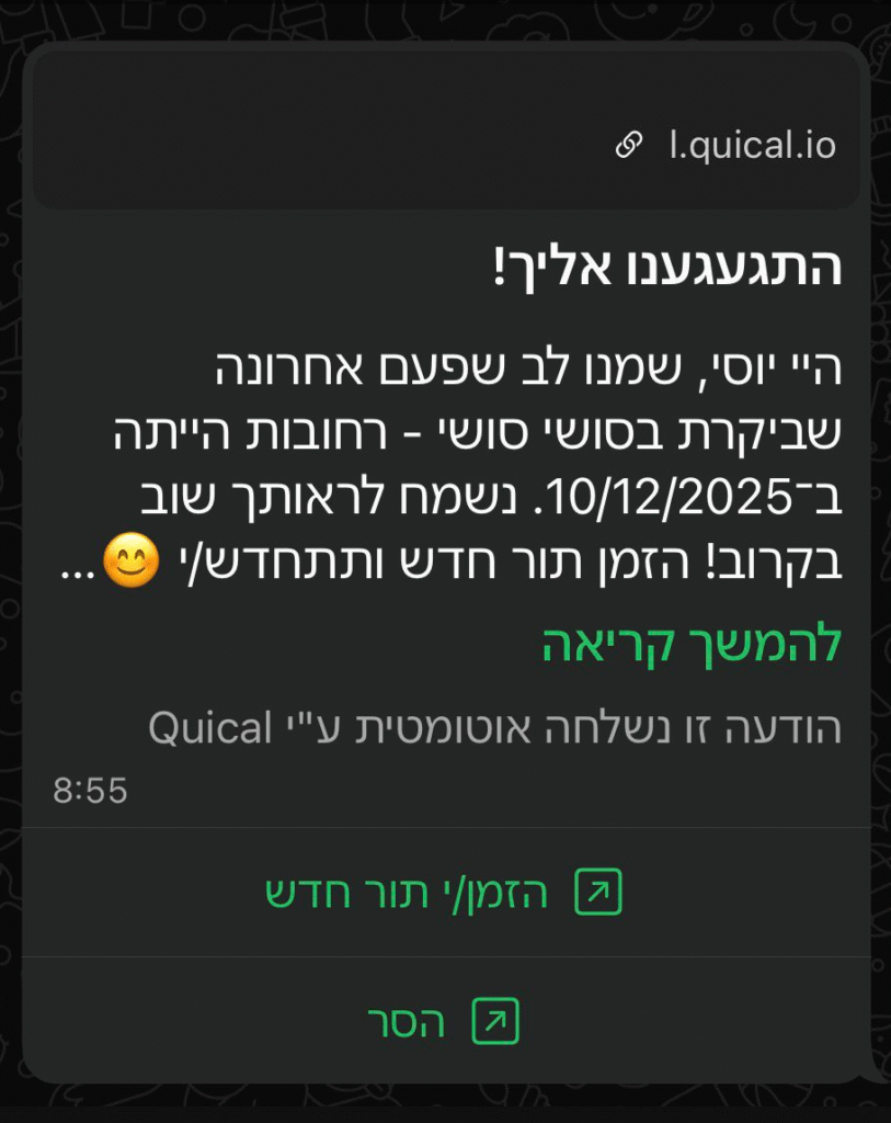 והכי חשוב — הלקוח מקבל הודעה מותאמת, חכמה ומדויקת.